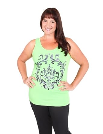 Plus Size Fashionable Workout Wear - "scroll" Tunic Tank Top In Lime Or Pink Other Resource